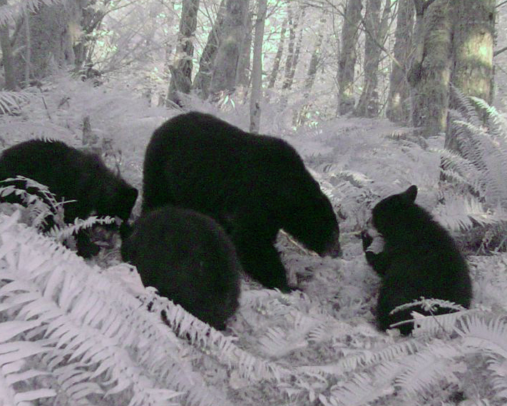 | This sow and her three cubs was a welcome surprise on my IR cam. I got a couple dozen photos of them in the ferns. |